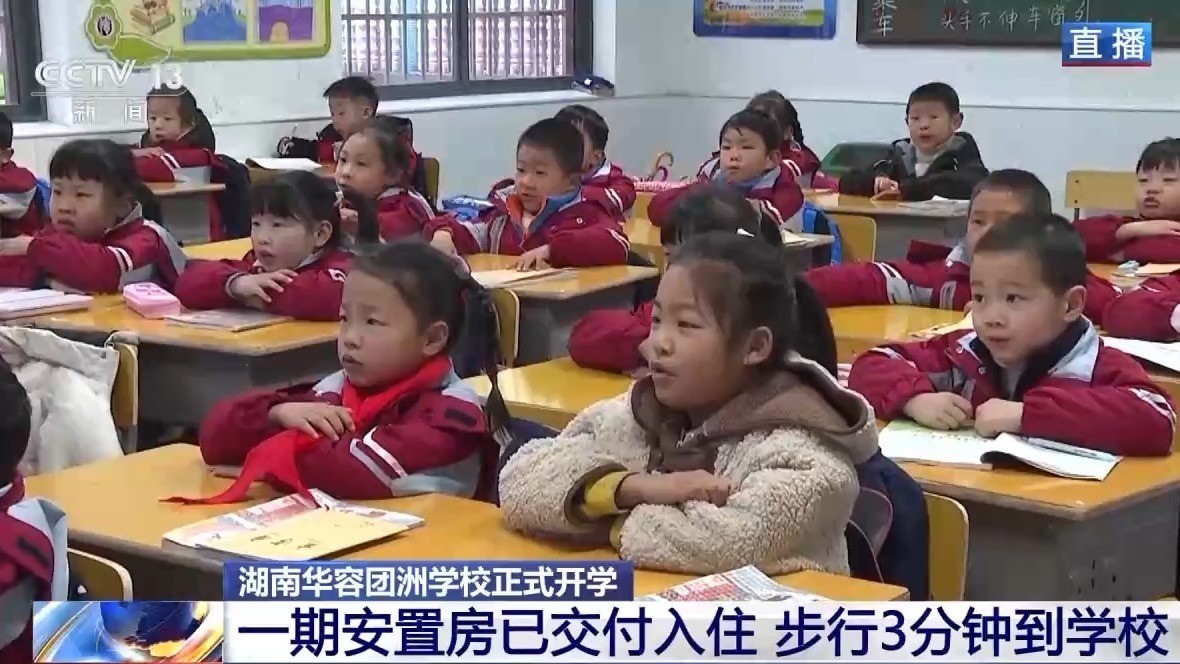 对于团洲学校的学生来说,新学期也将迎来更多期待。在离学校600米左右的地方,团洲新村二、三期安置房共1800多套,正在紧锣密鼓地建设之中,预计今年湖南进入汛期之前可以交付。到时候,所有在团洲学校上学的学生都可以实现在家门口上学,希望孩子们开心地生活学习。