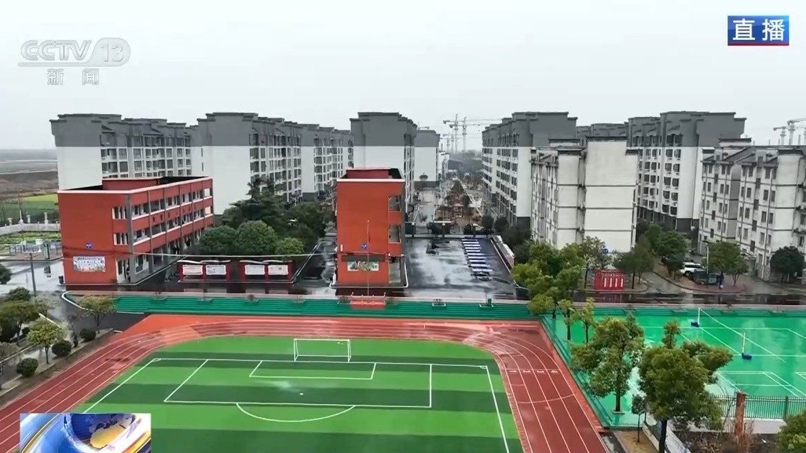 在团洲学校读书的学生,超过80%的学生家庭都遭遇了洪灾。去年12月,团洲新村一期安置房交付入住,通过航拍画面可以看到,安置小区离学校非常近,首批入住安置小区的学生上下学走路只要3分钟。还有一些暂时没有搬过来的学生,每天由校车接送。